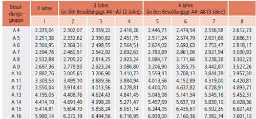 (in den Besoldungsgr. A4–A7 (2 Jahre)     (in den Besoldungsgr. A4–A8 (3 Jahre)