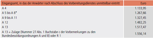 Anwärtergrundbetrag – ab 01.01.2021 (Monatsbeträge in Euro)